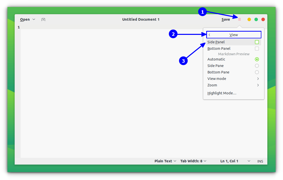 一旦安装,在插件中启用它。你必须从汉堡包菜单 -> “查看”-> “侧面板” 中启用侧面板视图。