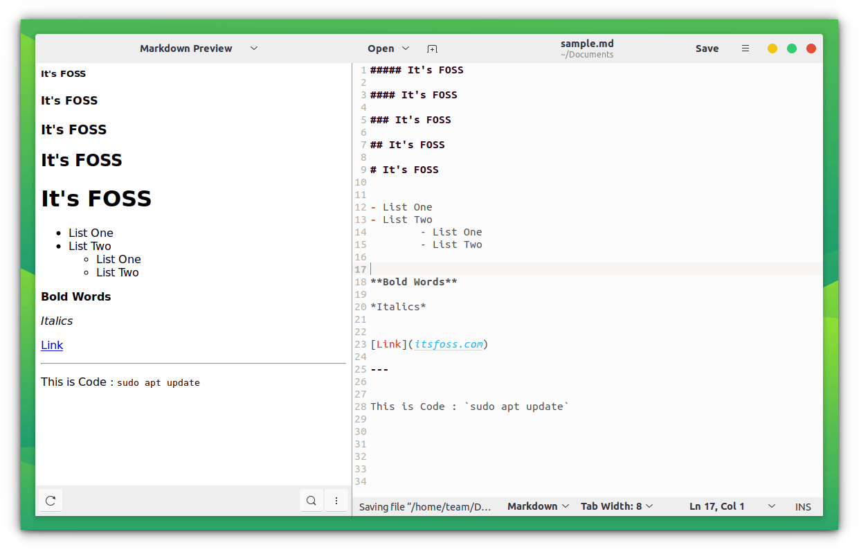 在一个名为 “Gedit Markdown Preview” 的插件的帮助下,Gedit 完全有能力呈现 Markdown 代码。