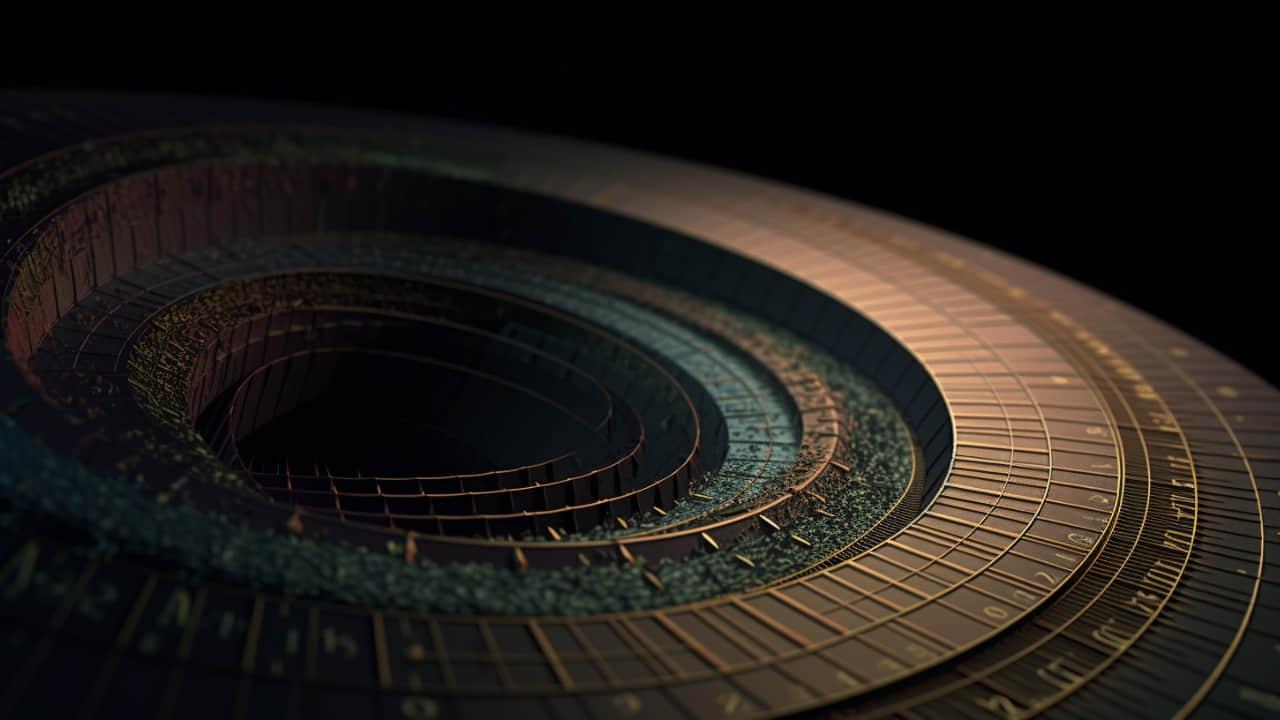 进一步的划分是与尺子的练习。我用尺子找到“四分之一楔形”和“八分之一楔形”任意两个交点的中点,做成一个 1/16 的楔形。你可以使用相同的方法制作越来越小的 1/32 和 1/64 圆的切片。通过非常小心,我还能够在圆的 1/128 处测量出一个非常窄的楔形: