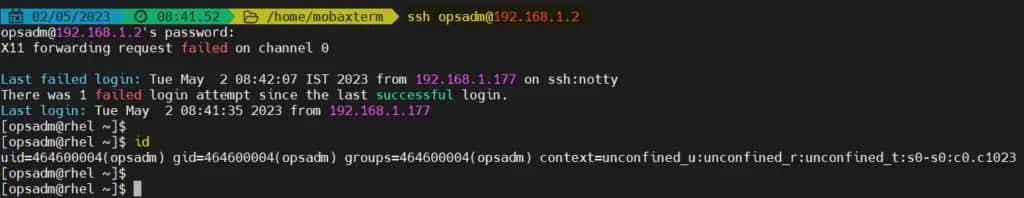 试着在你刚刚配置了 FreeIPA 客户端的 RHEL 系统上使用 opsadm 用户通过 SSH 登录。