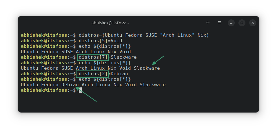 distros=(Ubuntu Fedora SUSE "Arch Linux" Nix)