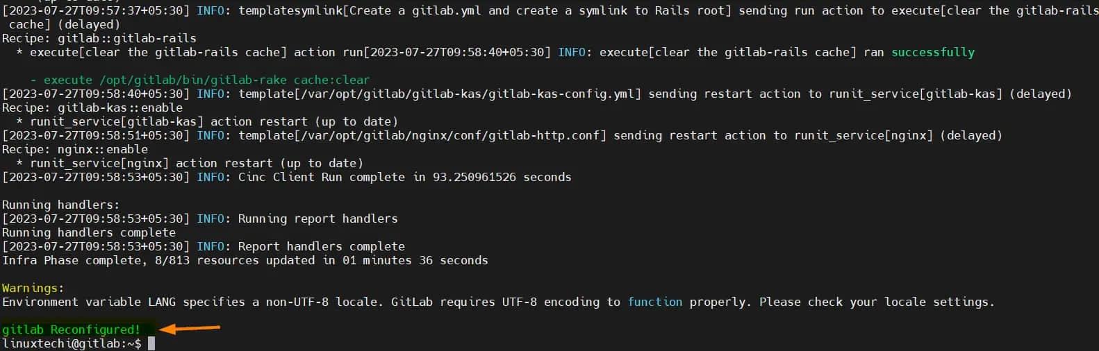 $ sudo EXTERNAL_URL="http://gitlab.linuxtechi.net" apt install gitlab-ce