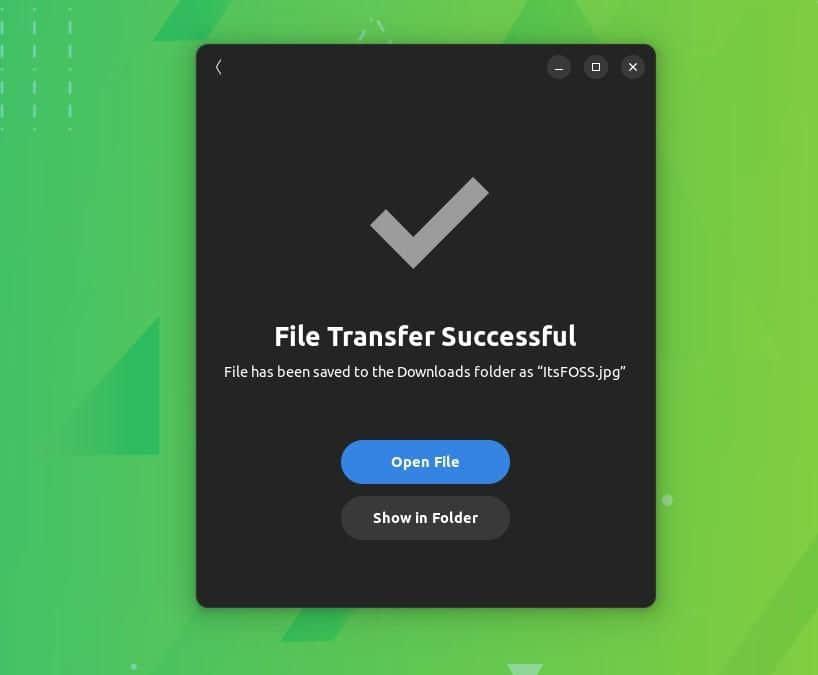 就是这样。文件传输完成后,接收方将显示以下页面:
