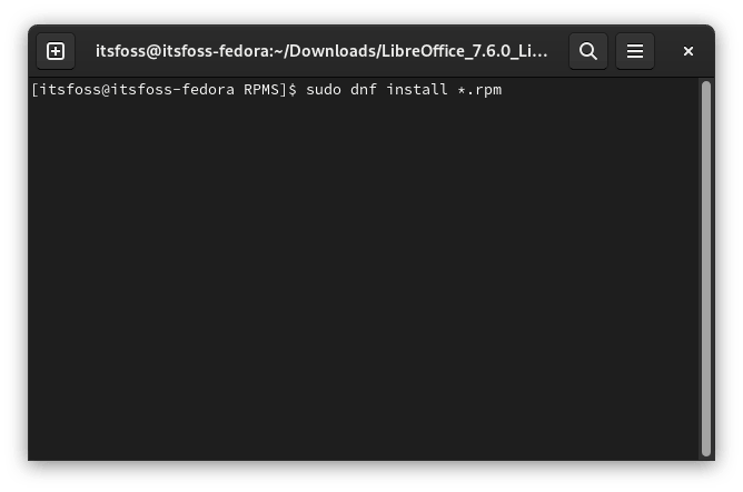 当你进入这个文件夹,在终端中使用右键菜单打开它(如图所示)并根据你的包输入以下命令之一(适用于 Fedora 和基于 Debian 的发行版):