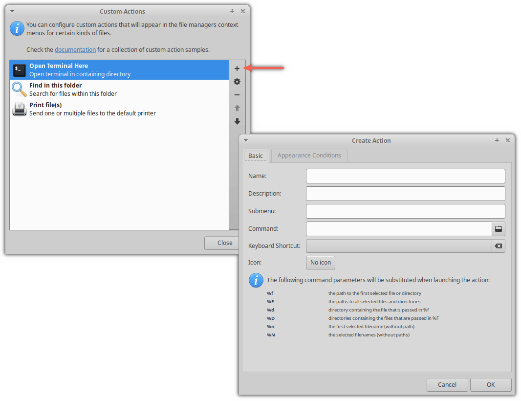 接下来,我要向你展示如何设置一个以 root 身份打开 Thunar 的自定义动作。