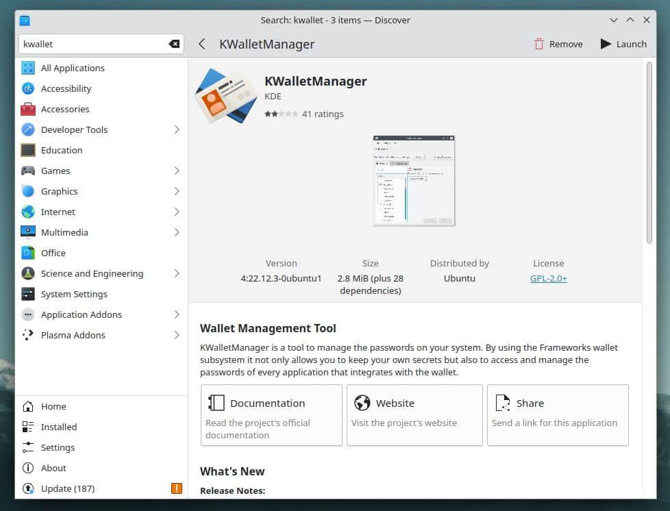 KDE 钱包管理器 Wallet Manager 是 KDE Plasma 桌面默认包含的一个应用,用于存储和管理密码。
