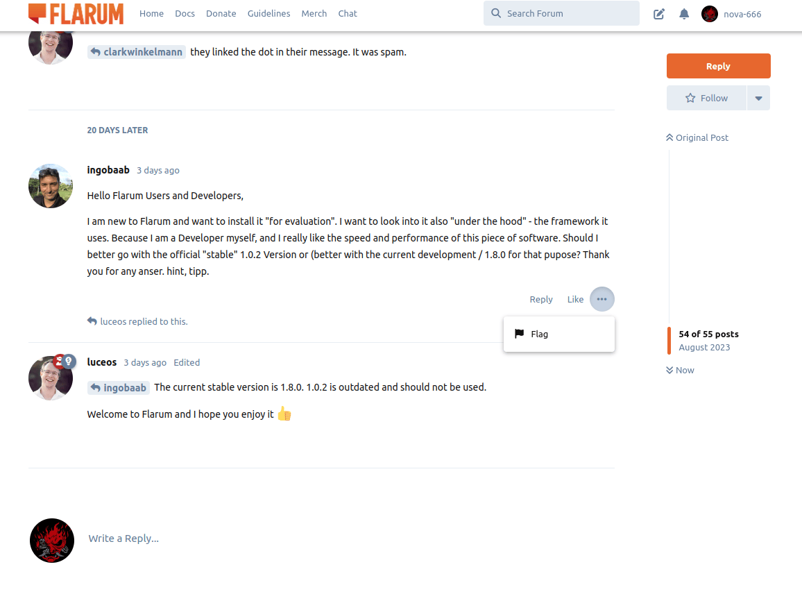 总的来说,Flarum 与广受欢迎的 Discourse 提供了相似的舒适体验,它具有有益的特性差异,且其技术栈易于安装和管理。