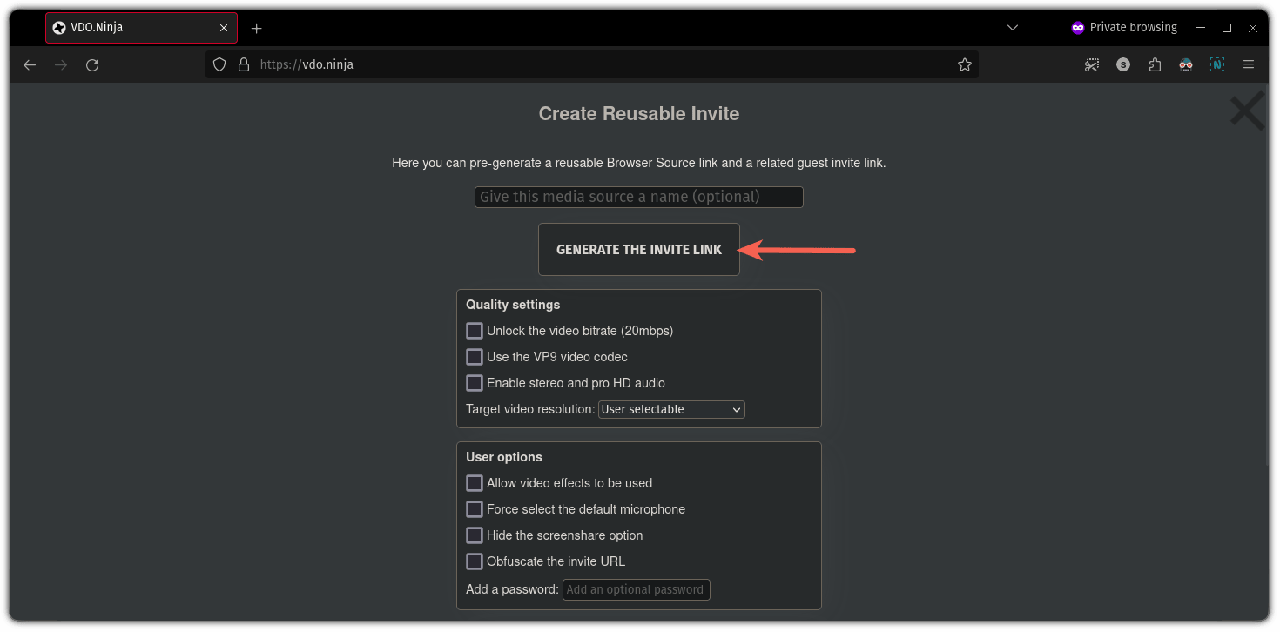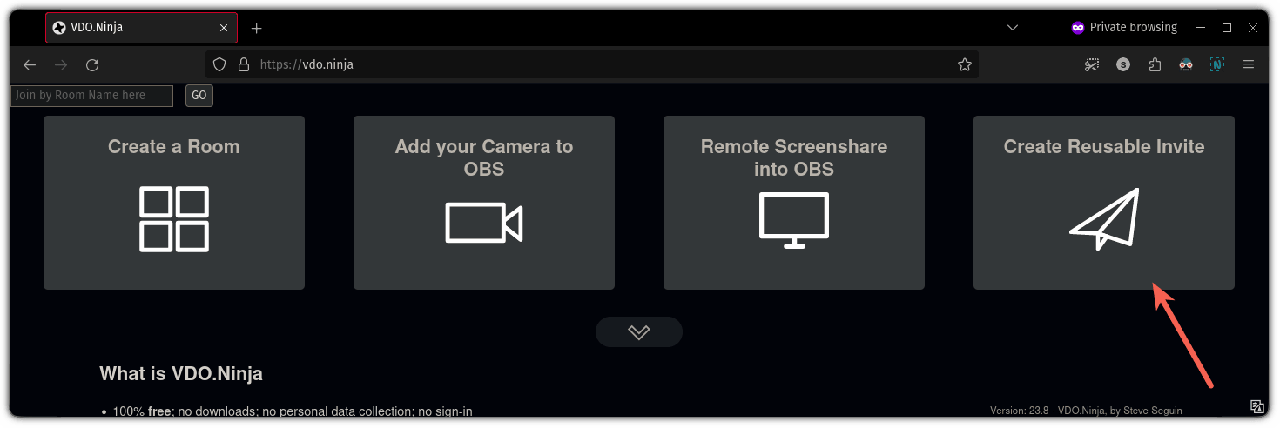 首先,访问 VDO.ninja 并点击 “ 创建可重用的邀请 ”: