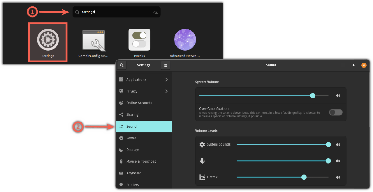 接下来,前往系统“ 设置 ”,找到“ 声音 ”部分的设置: