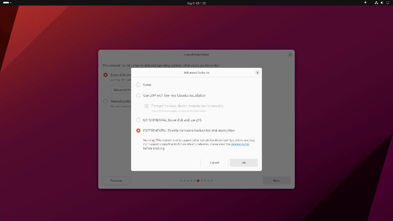TPM 支持的 全磁盘加密 (FDE)作为一项实验性功能引入,是 Ubuntu 过去 15 年处理 FDE 方式的重大变化。