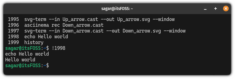 现在,假设我想要执行倒数第二个 echo 命令,我会这样使用: