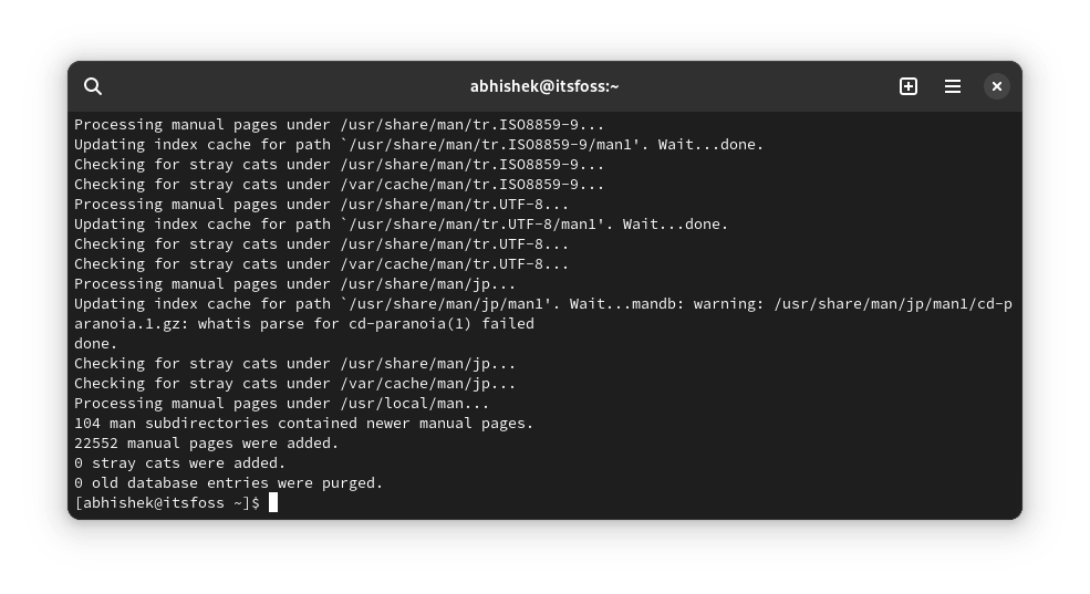 也许我是在 Arch 中遇到这个缺少 man 命令问题的极少数用户之一。也许不是。如果你遇到过这样的“意外错误”,请在评论中告诉我。
