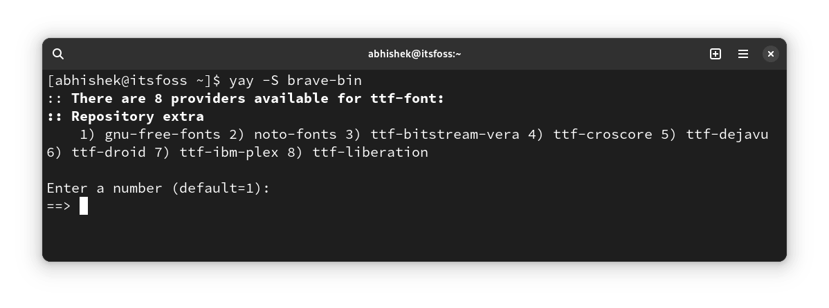 如果你安装了 Yay(或任何其他 AUR 帮助程序),那么安装 Brave 就像使用以下命令一样简单:
