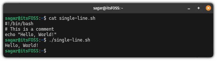 #!/bin/bash # This is a comment echo "Hello, World!"