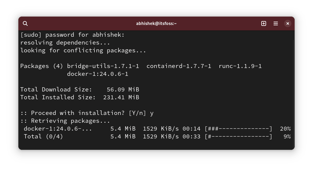 恭喜! 你已经在 Arch Linux 上成功安装了 Docker。