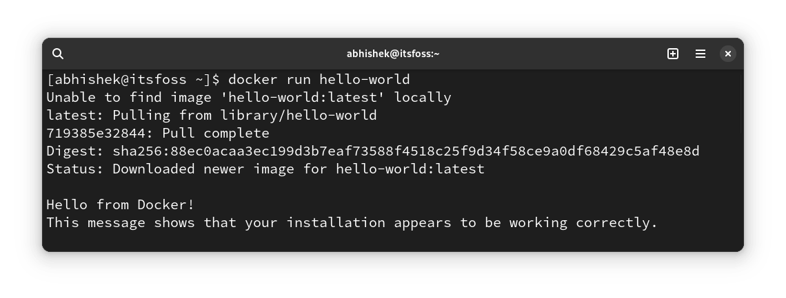Docker 本身提供了一个很小的 Docker 镜像来测试 Docker 安装。运行它并查看是否一切正常: