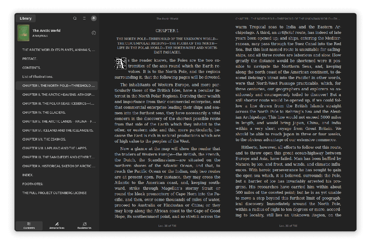 如你所见,Foliate 的主要变化在于其用户界面。它现在采用了全新的布局,把图书库和电子书阅读器都整合到一个窗口中。