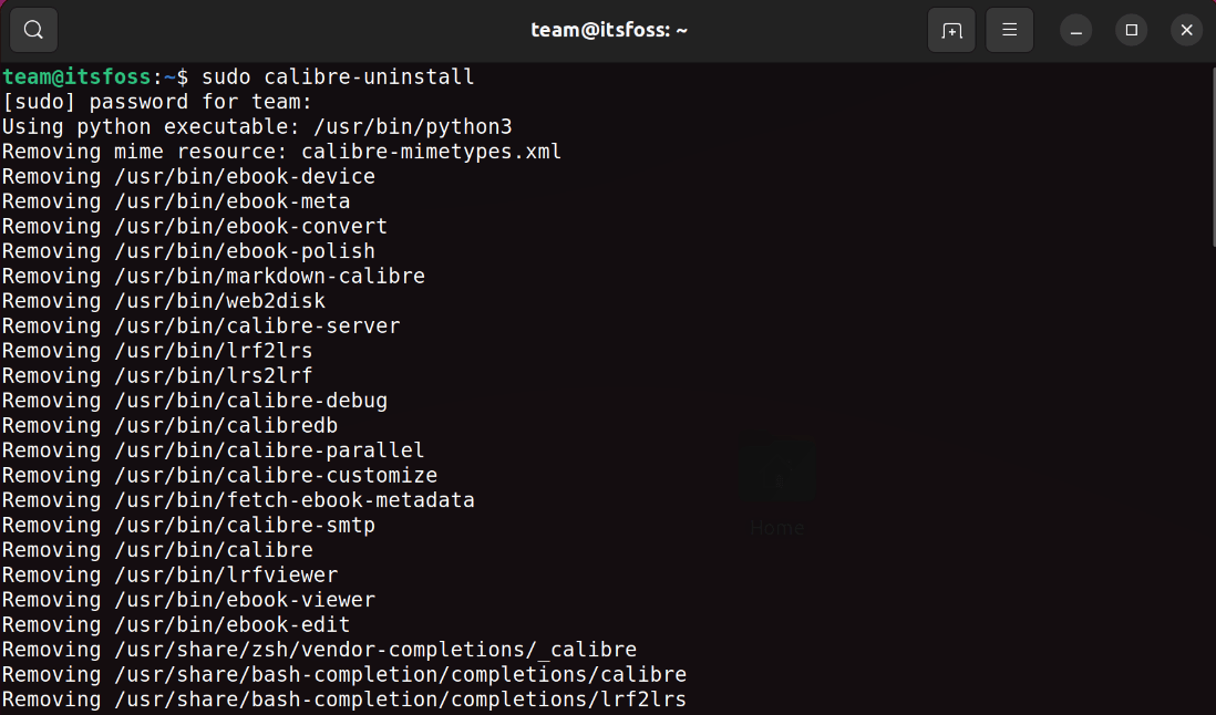 如果你按照上述二进制安装法安装了 Calibre,你可以通过运行 sudo calibre-uninstall 来卸载 Calibre。或者,直接删除安装文件夹,这样就可以删除 99% 的安装文件。