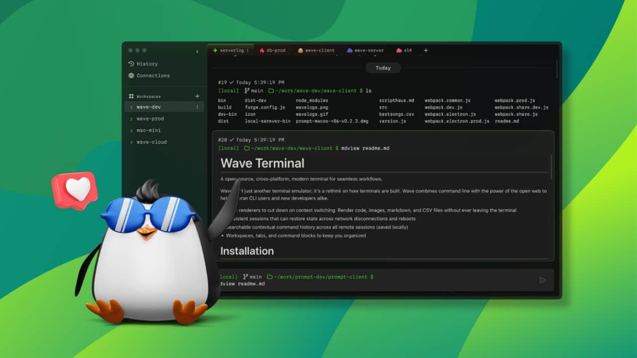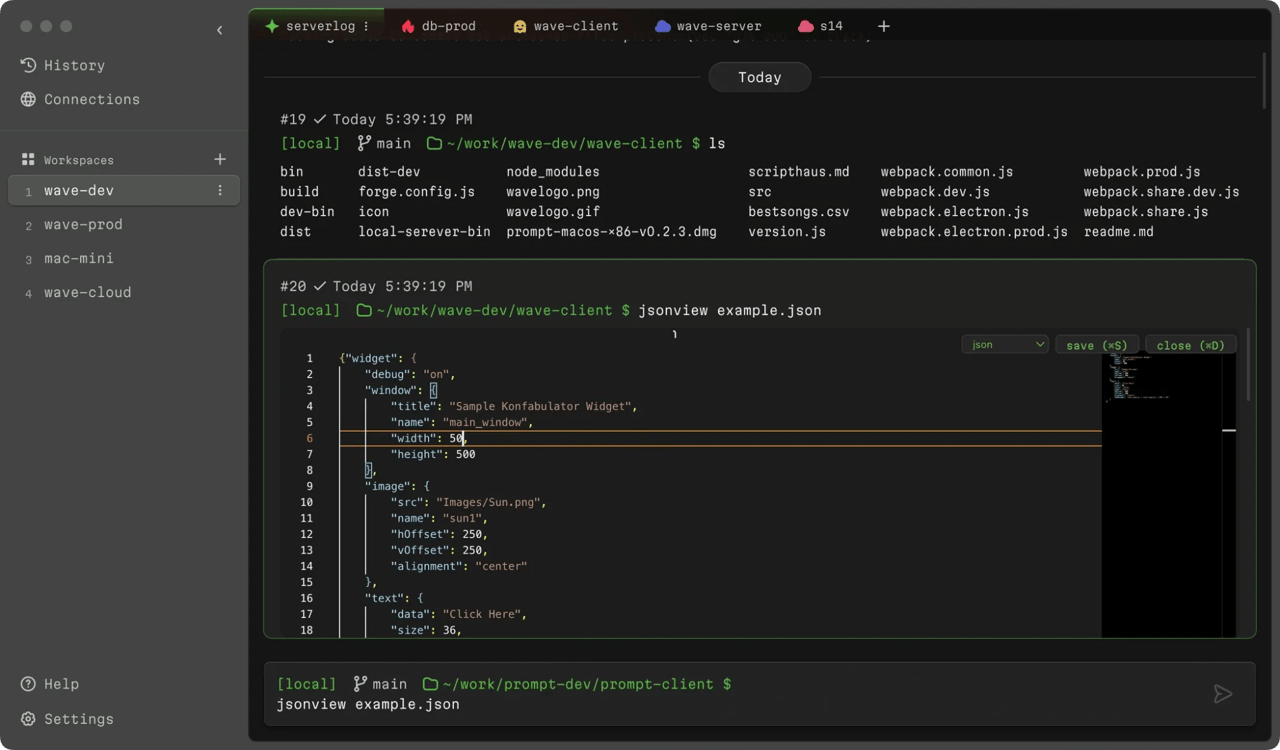? 保存并保持 SSH 连接持久化,把它们分组到工作区,并且在图形界面下编辑文件,这些都是一个开发者成为 Wave 终端粉丝的充足理由。