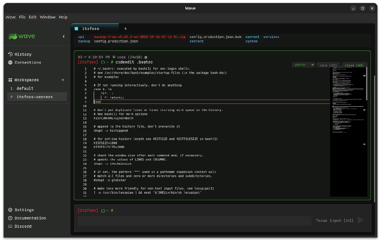Wave 终端最大的目标就是它让你不会感觉自己在终端里。对于在终端中编辑文件的初学者来说,这就是他们的阿喀琉斯之踵。即使是在终端中使用基础编辑器(比如 Nano),那也要有一段学习曲线。