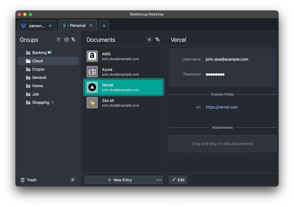如果你在寻找一款优先考虑本地使用的密码管理器,那么Buttercup 就是一个针对 macOS、Linux 和 Windows 的理想选择。