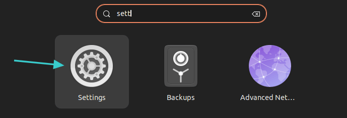 进入系统设置。按 Ubuntu 中的 Super 键(Windows 键)并搜索“Setting”。