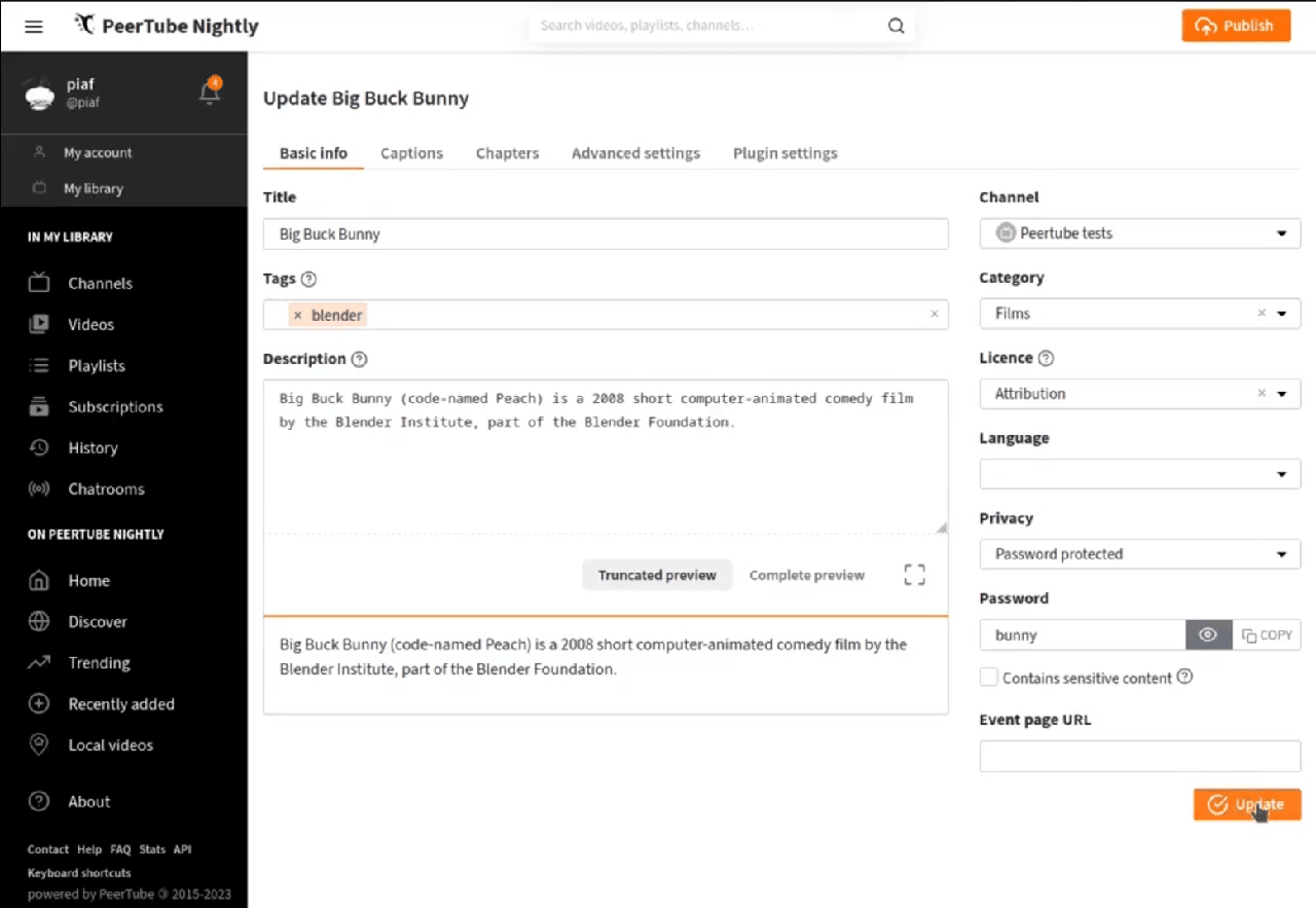但是,此功能必须由 PeerTube 实例的管理员启用才能工作。被替换的视频将被贴上“视频重新上传”标签。