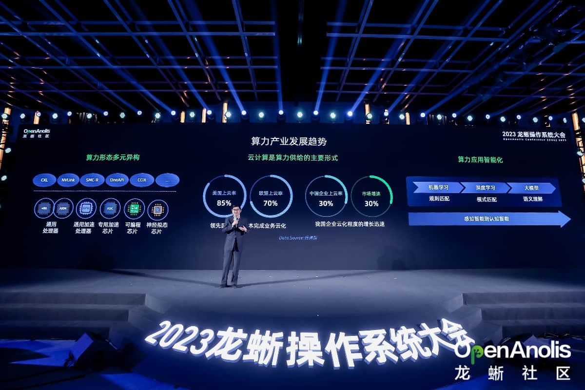 张东表示,智算时代,算力产业呈现出算力形态多元异构、算力供给服务化、算力应用智能化的新发展趋势,需要以应用为导向,以系统设计为核心,从系统的角度出发,真正让不同架构的技术、产品和相应的生态融合起来。而达成这个目标的一大关键,就是要推动系统软件的进阶,实现多元算力的协同优化,云原生应用场景支撑优化以及系统软件与 AI 的深度双向融合。