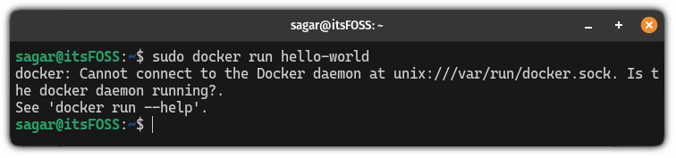 如果你尝试在不使用 sudo 的情况下使用 Docker,则会出现错误: