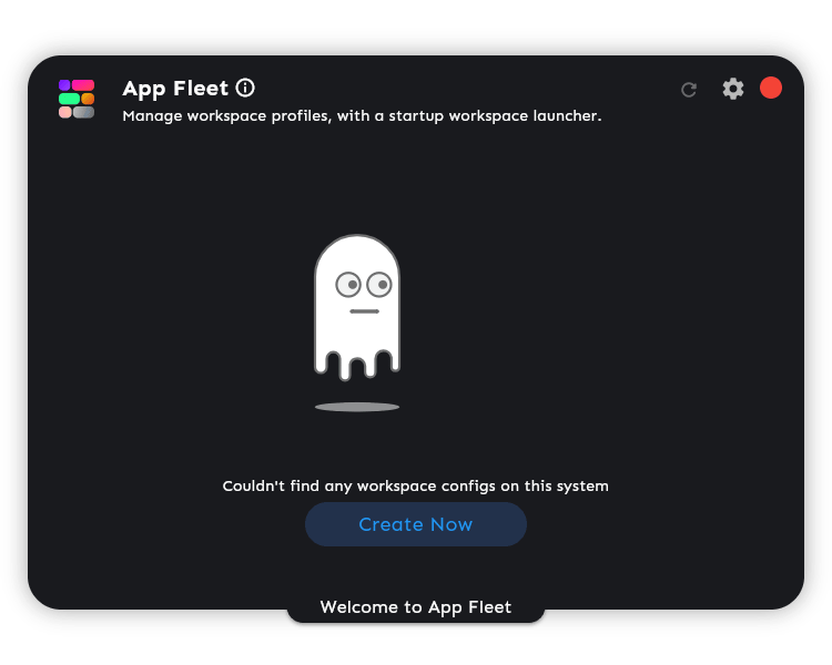 将其安装到我的 PC 上后,我启动了 App Fleet,然后迎接我的是一个面无表情的幽灵,说这个系统上没有工作区配置。