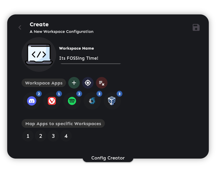 设置完所有内容后,我单击右上角的 “保存” 图标来保存我的工作区配置。